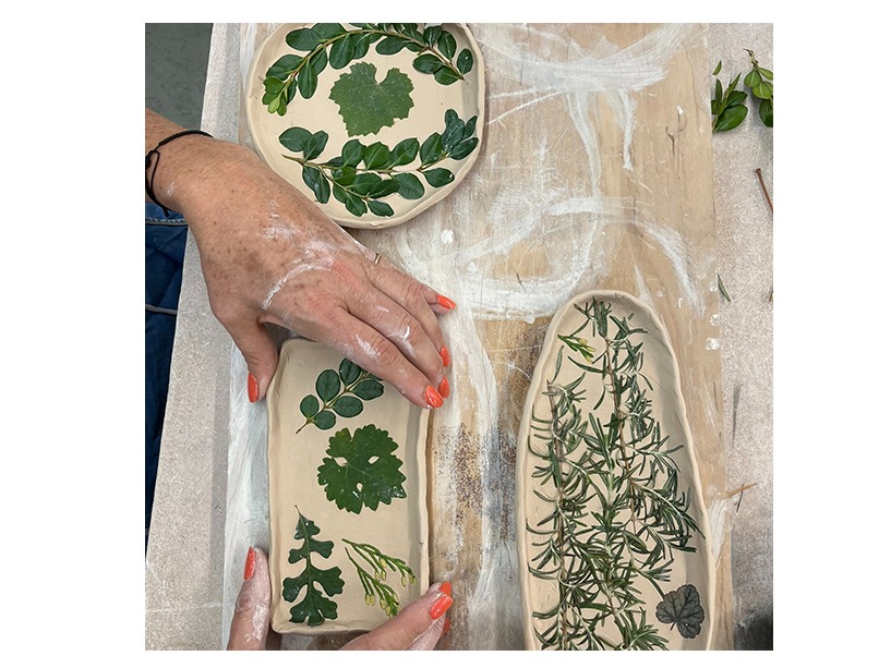 Miriam will instruct you how to make a larger clay platter imprinted with finds from nature for decoration. Bring flowers such as fuschias, leaves with strong veins, grasses or texture objects to imprint the clay.