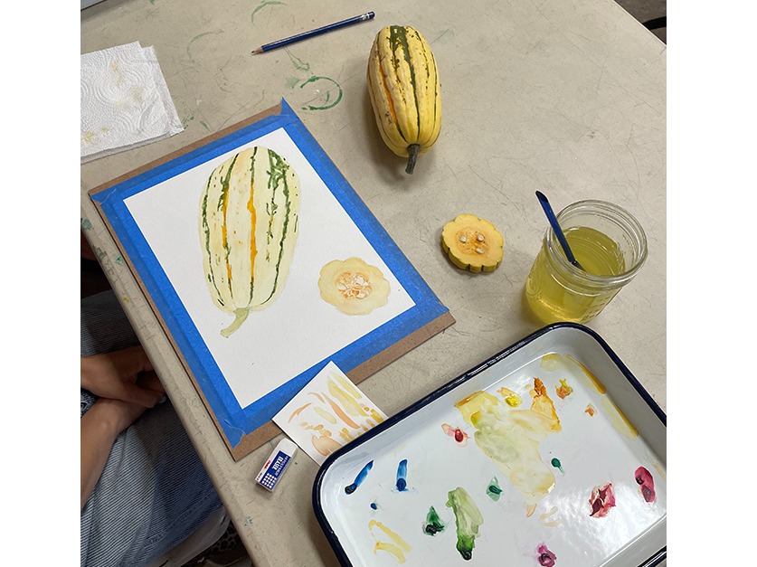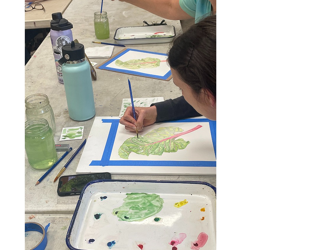 The class will practice basic drawing in addition to watercolor technique, with a focus on strengthening one’s observational skills while learning a step by step layering process that trains the artist to see value and color.